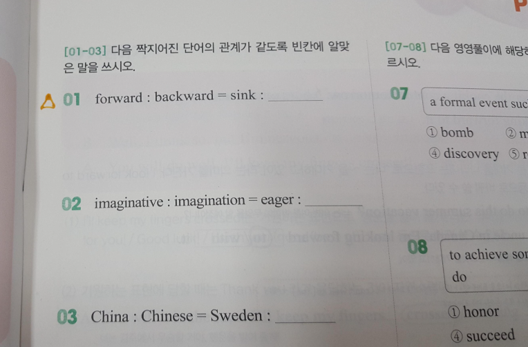 * 제한 시간에 모르는 문항은 비워두거나 찍습니다. 찍을 때에는 아무 거나 찍지 말고, 문제 풀이과정에서 선별한 선택지에서 가장 확률이 높다고 생각하는 것을 찍어야겠죠? 찍는 것도 훈련입니다. ^^